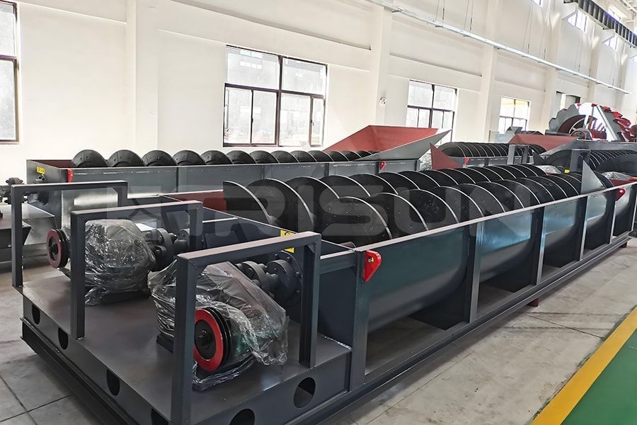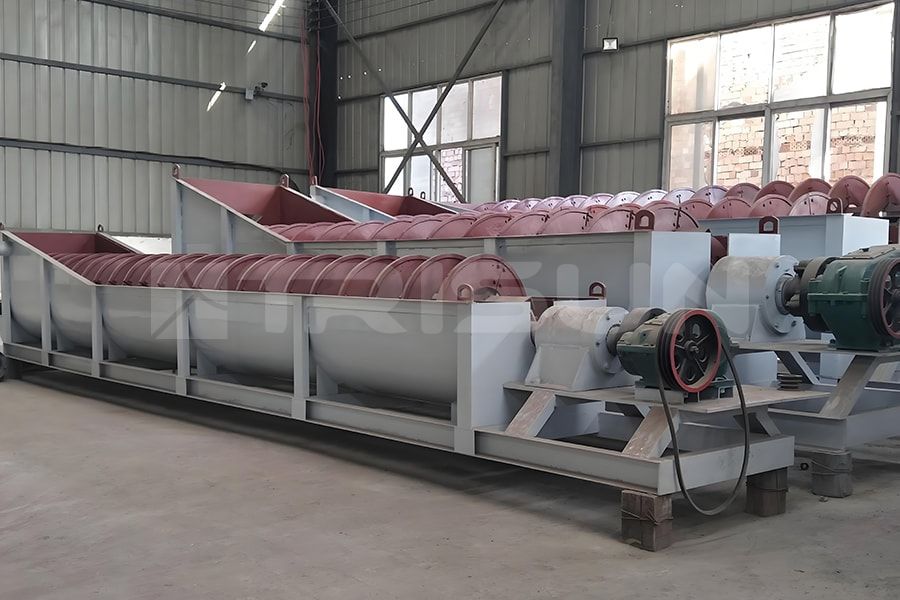 Spiral sand washer is divided into double spiral sand washer and single spiral sand washer . Double spiral sand washer is more efficient and has greater capacity than single spiral sand washer. The rotor of the double-spiral sand washer adopts a central structure, the spiral blades are installed on the central shaft, and a reducer is connected to the central shaft for work. It performs mechanical classification based on the principle that solid particles have different settling speeds in liquids due to different specific gravity.