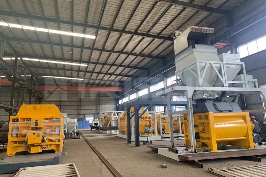 1. High efficiency: Usually, it is equipped with a JS forced twin-shaft concrete mixer, which can produce plastic, dry-hard concrete and other types of concrete with high production efficiency.