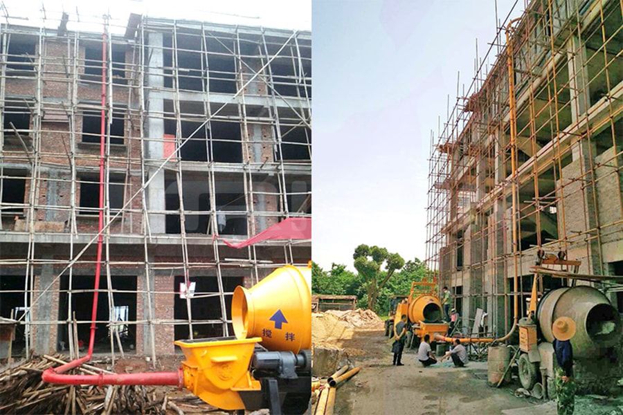 Q: Compared with the traditional manual pouring with buckets, what are the benefits of using a concrete mixer with pump?